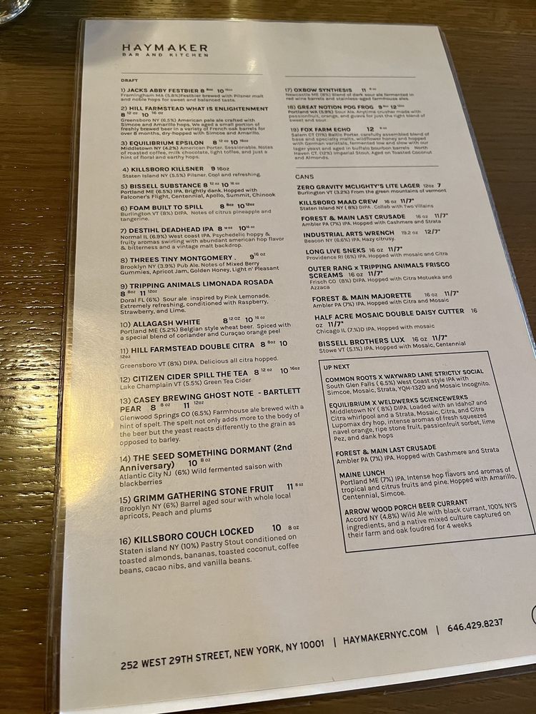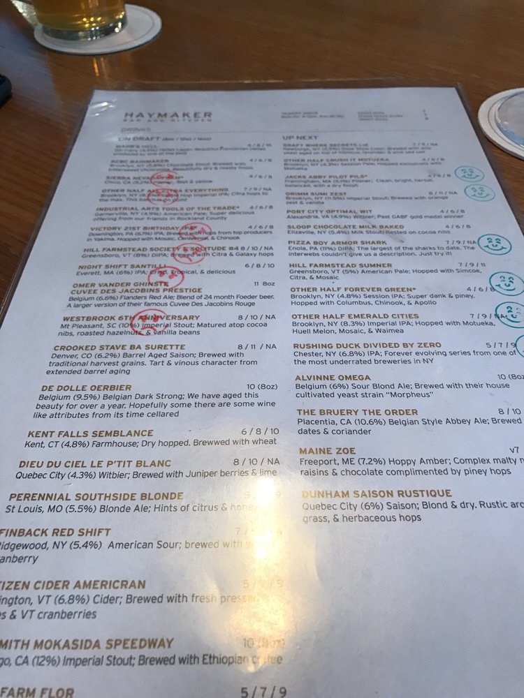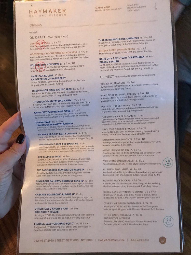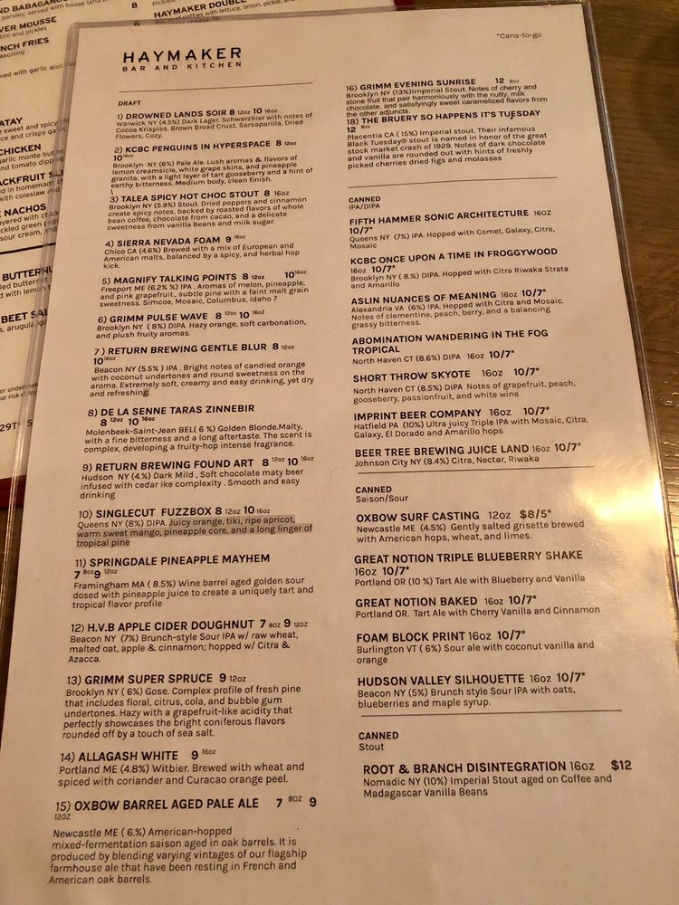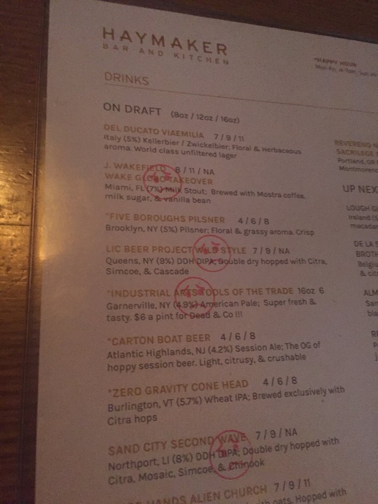 Haymaker Bar Menu (Update 2025)